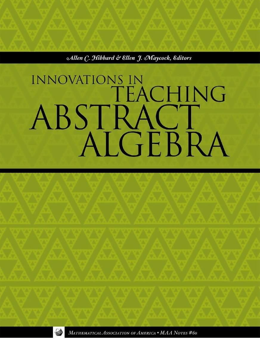 Description: This collection of articles is the outgrowth of several gatherings of mathematicians who were interested in discussing the teaching and learning of abstract algebra. The Editors of Innovations in Teaching Abstract Algebra have chosen the articles appearing in the volume in order to acquaint readers about various technological innovations, to detail methods of teaching abstract algebra that engage students, and to share more general reflections on teaching an abstract algebra course.